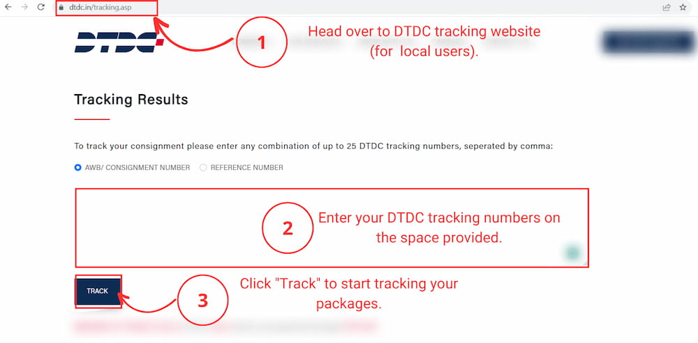 For tracking online on DTDC’s official site:
